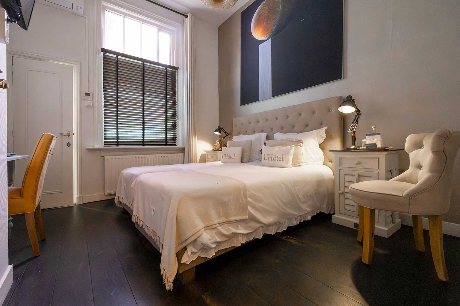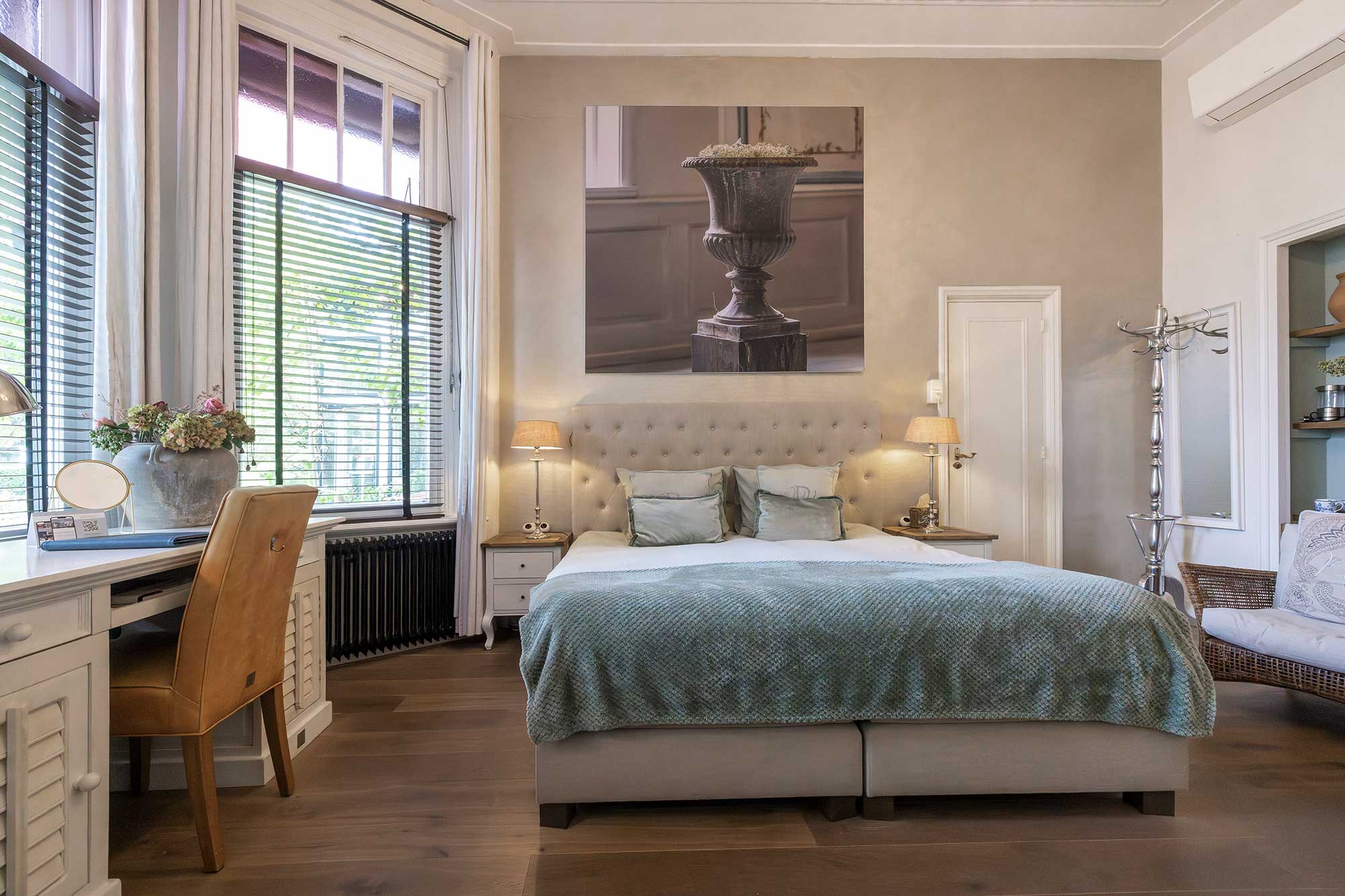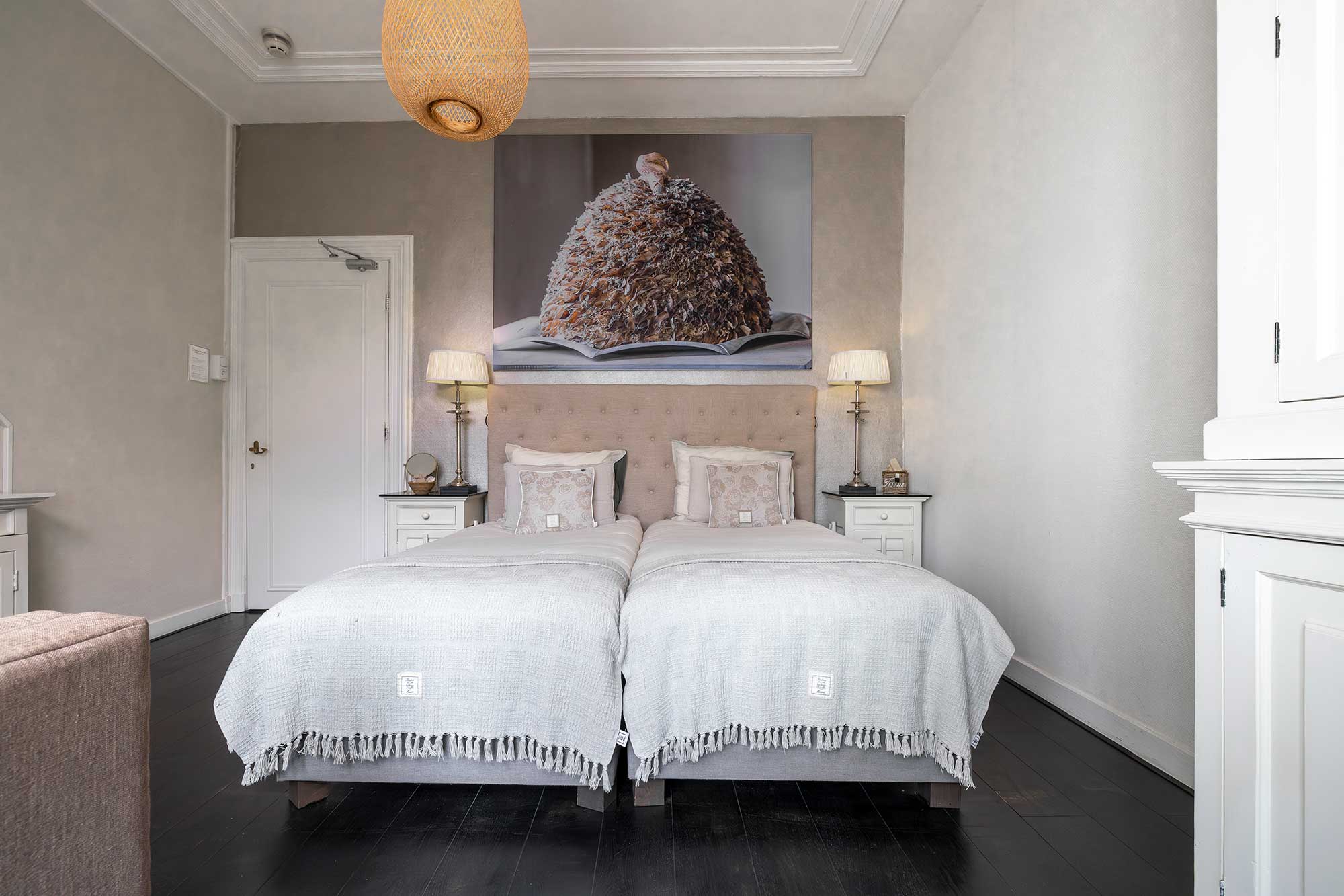 De kamers van ons boutique hotel in Apeldoorn zijn, hoewel verschillend, allemaal sfeervol en luxe ingericht met meubelen en accessoires van Rivièra Maison.