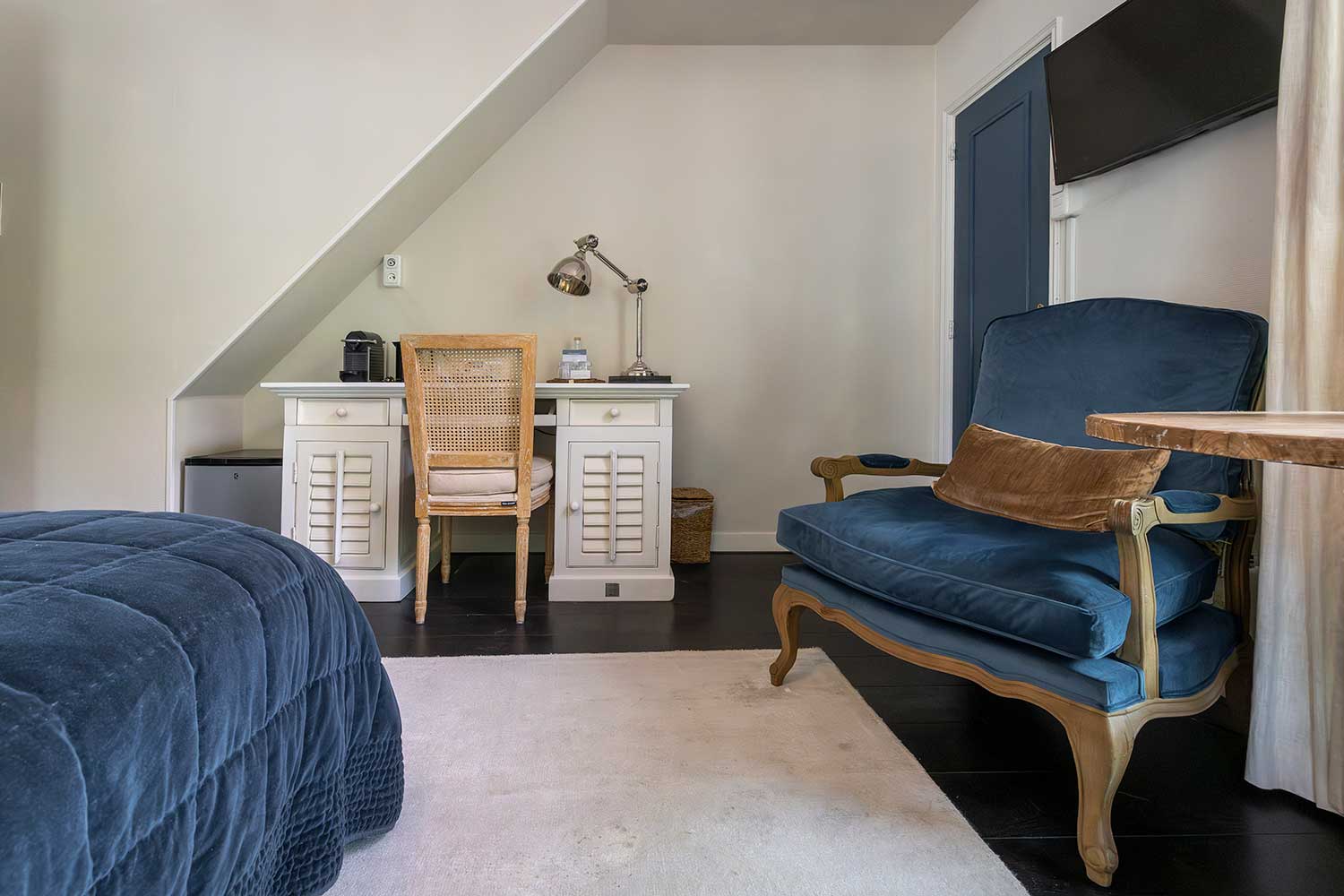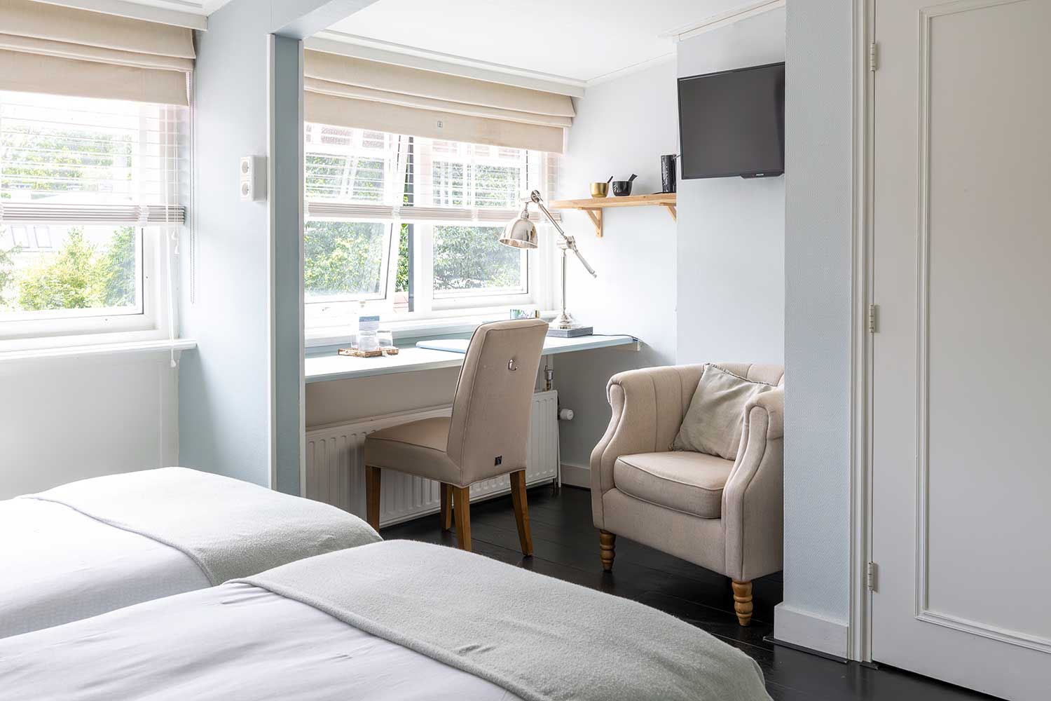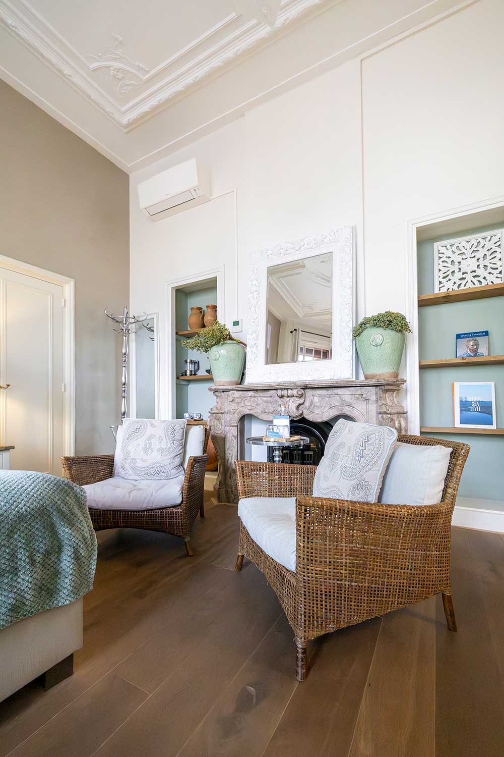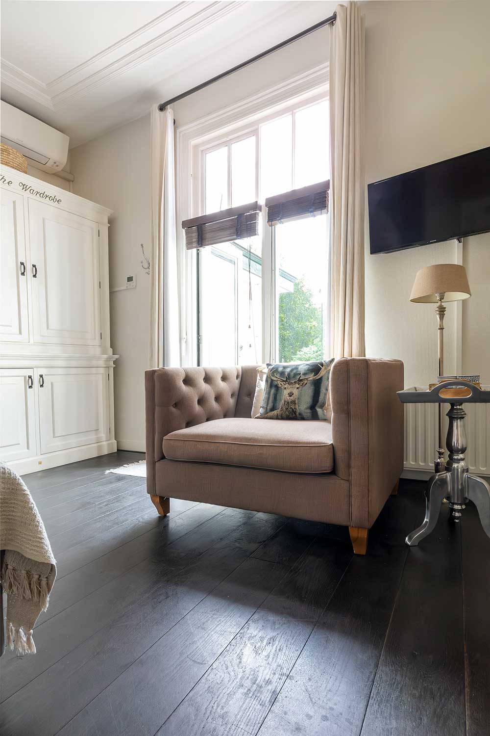 De kamers van ons boutique hotel in Apeldoorn zijn, hoewel verschillend, allemaal sfeervol en luxe ingericht met meubelen en accessoires van Rivièra Maison.