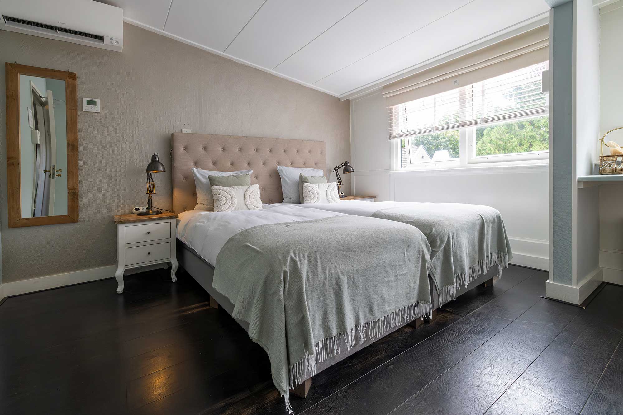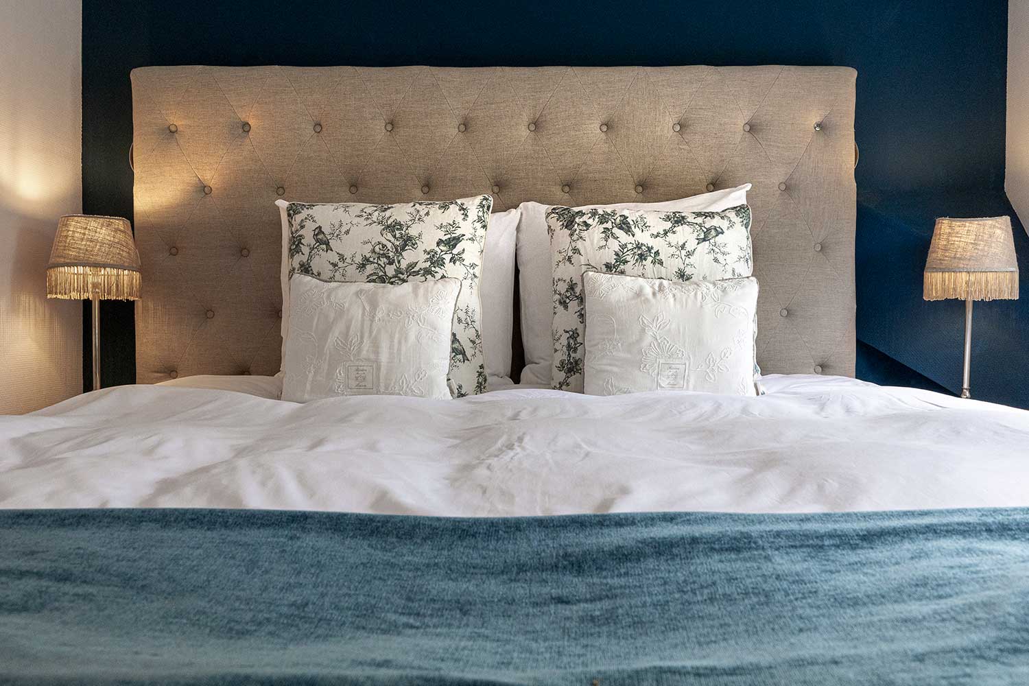 - handgemaakte king size of twinbedden van het Nederlandse merk Nilson Beds – opgemaakt met luxueus beddengoed van The House of Walra.